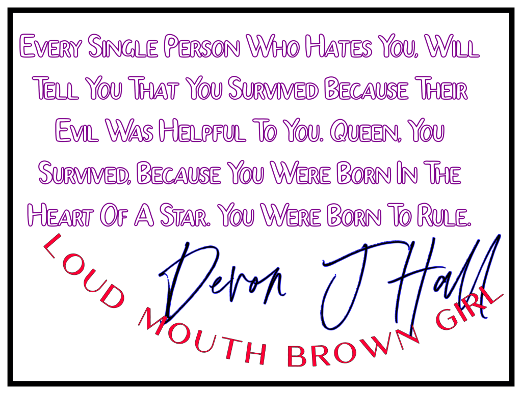 And all of the mental health issues that I suffer from, could have been avoided if only someone had stepped in to intervene before it was too late. Since they chose not to, I am now the Loud Mouth Brown Girl, and I am officially making it my mission to keep talking about what they did, so that when the truth DOES fully come out and their masks ARE removed and their true faces ARE revealed I can sit in the front and center of that court room and watch as everything they thought was true comes to an end.