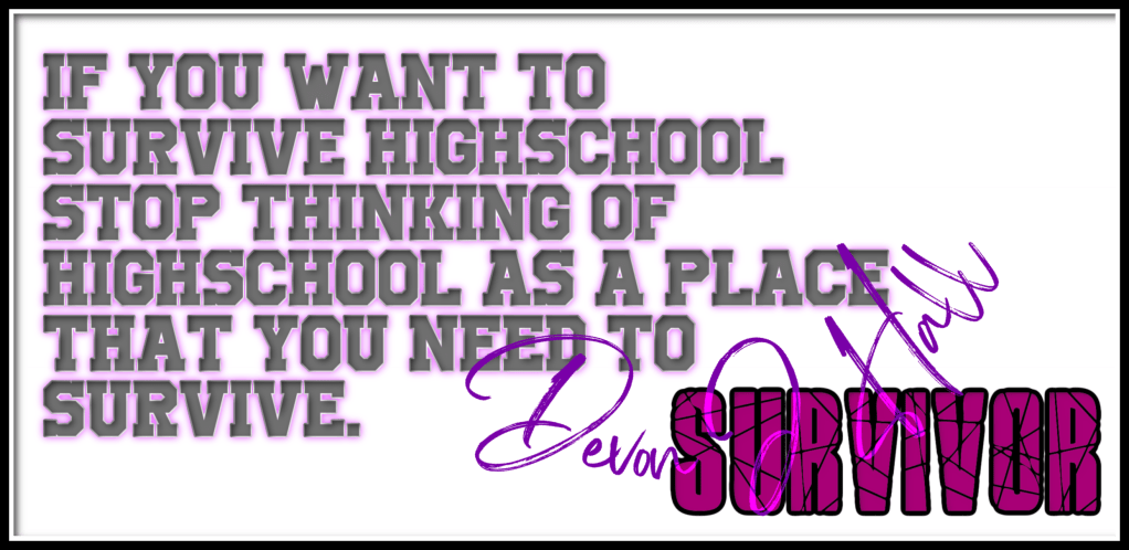 Be the class clown, the jock, the nerd, the smart kid, the happy kid, the sad kid, be whatever kind of kid YOU need to be, so that YOU can become the adult YOU needed when you were growing up, because THAT’S how you survive highschool.