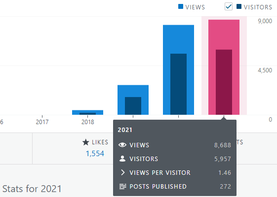 This year I had 8,688 people visit the site at the writing of this article, on 2021-12-04, which means that’s 480 brand new people more than last year. I am hoping before the end of 2021, there will be new people introduced into my Loud Mouth Brown Girl world, it would be cool if I can make it to a more even five hundred people.